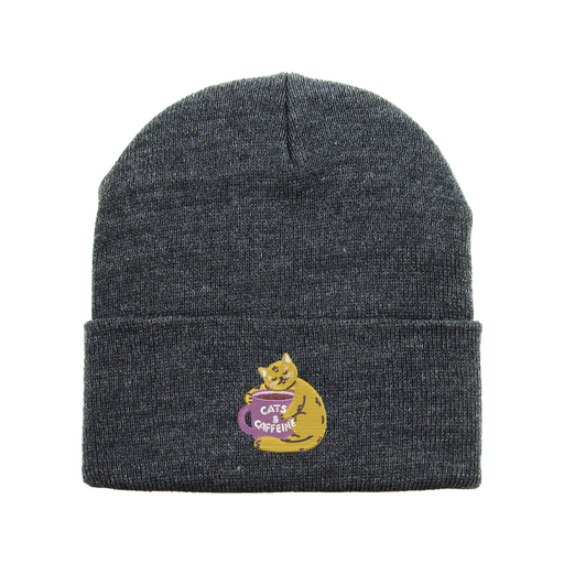 Cats & Caffeine Dad Hat designed by Patches and Pins. Stay warm in the winter and cool this summer with our custom dad hats.