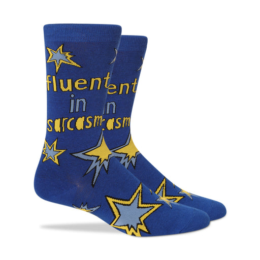 Patches and Pins Men's socks "Fluent in sarcasm". Product Details; SeamlessElasticized cuffs, solid heel and toeMachine wash in cold, air dry recom...