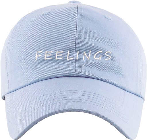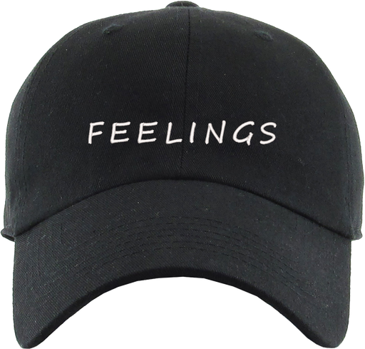 Feelings Dad Hat designed by Patches and Pins. Stay warm in the winter and cool this summer with our custom dad hats.