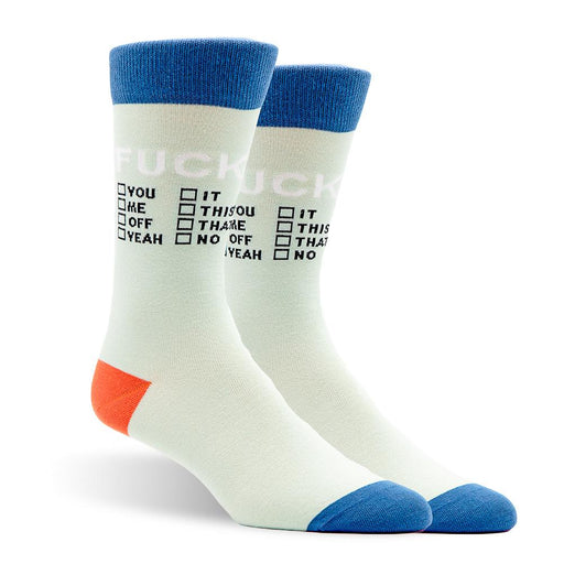 Patches and Pins Men's socks "fuck checklist"; Product Details; SeamlessElasticized cuffs, solid heel and toeMachine wash in cold, air dry recomme...