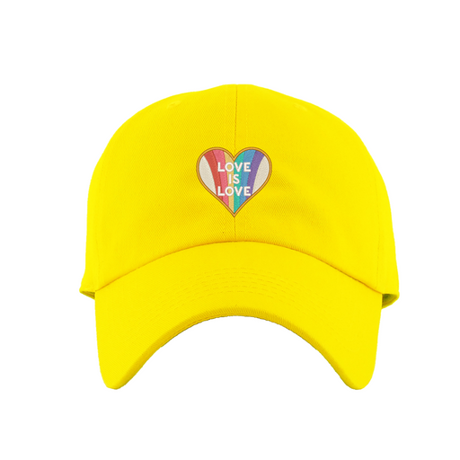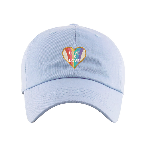 Love is Love Dad Hat designed by Patches and Pins. Stay warm in the winter and cool this summer with our custom dad hats.