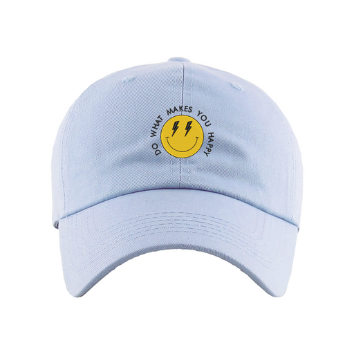 Do What Makes You Happy Dad Hat designed by Patches and Pins. Stay warm in the winter and cool this summer with our custom dad hats.