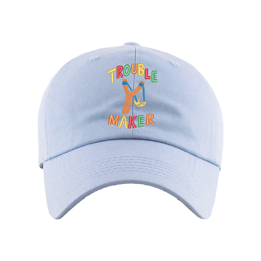 Trouble Maker Dad Hat designed by Patches and Pins. Stay warm in the winter and cool this summer with our custom dad hats.
