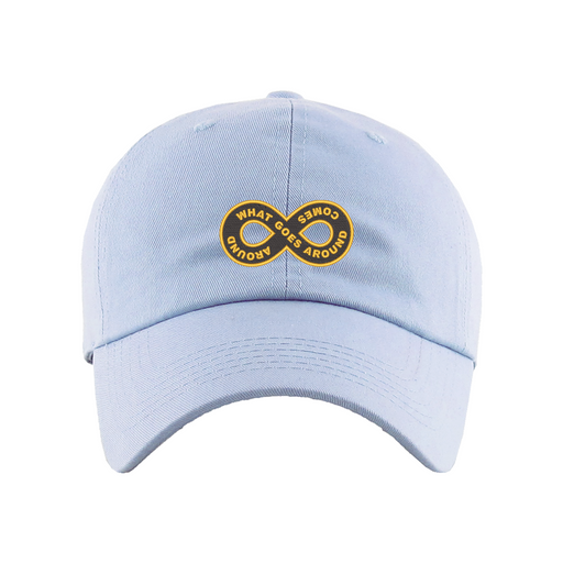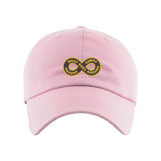 What Goes Around Comes Around Dad Hat designed by Patches and Pins. Stay warm in the winter and cool this summer with our custom dad hats.