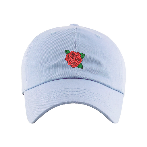 Rose Dad Hat designed by Patches and Pins. Stay warm in the winter and cool this summer with our custom dad hats.
