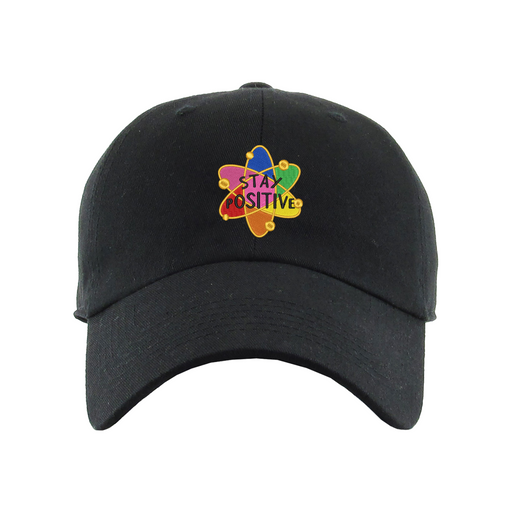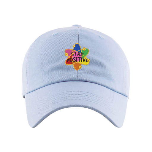 Stay Positive Dad Hat designed by Patches and Pins. Stay warm in the winter and cool this summer with our custom dad hats.