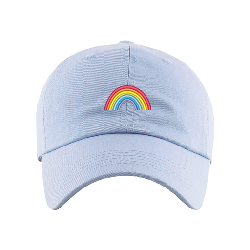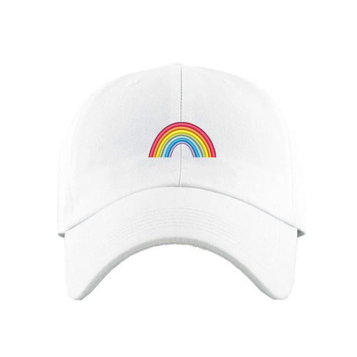 Rainbow Dad Hat designed by Patches and Pins. Stay warm in the winter and cool this summer with our custom dad hats.
