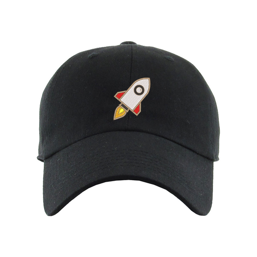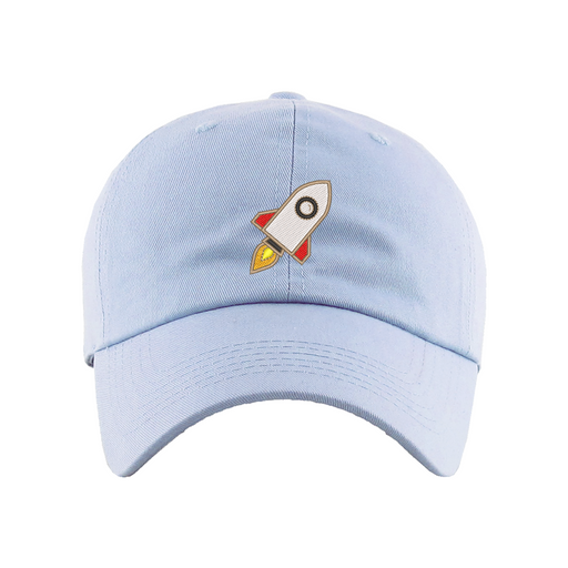 Rocket Dad Hat designed by Patches and Pins. Stay warm in the winter and cool this summer with our custom dad hats.