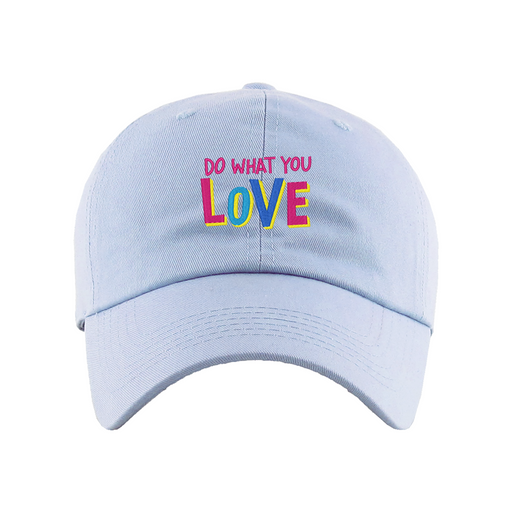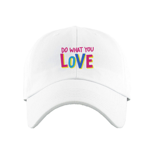 Do What You Love Dad Hat designed by Patches and Pins. Stay warm in the winter and cool this summer with our custom dad hats.