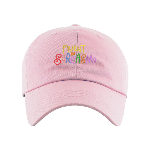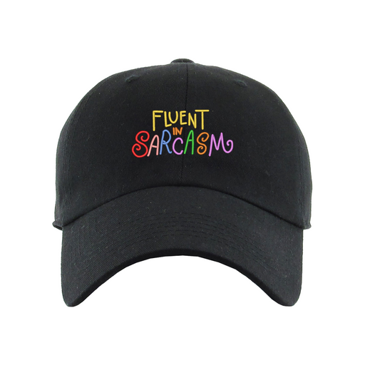 Fluent in Sarcasm Dad Hat designed by Patches and Pins. Stay warm in the winter and cool this summer with our custom dad hats.