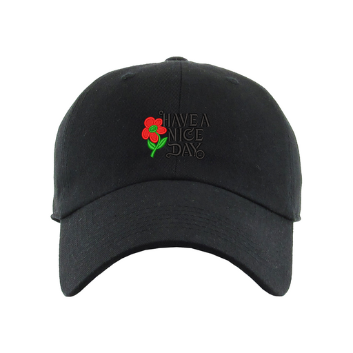 Have a Nice Day Dad Hat designed by Patches and Pins. Stay warm in the winter and cool this summer with our custom dad hats.