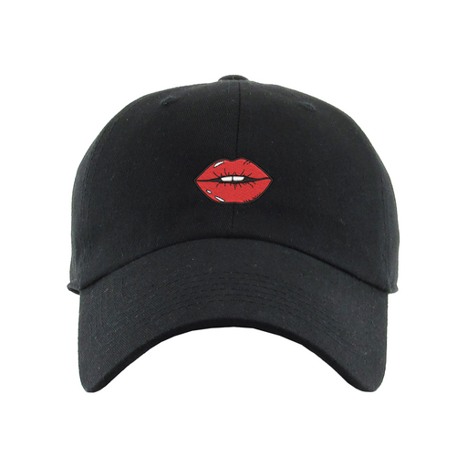 Red Lips Dad Hat designed by Patches and Pins. Stay warm in the winter and cool this summer with our custom dad hats.