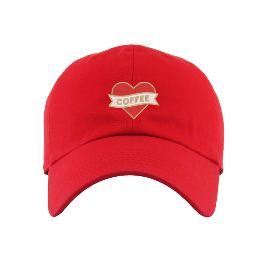 Heart Coffee Dad Hat designed by Patches and Pins. Stay warm in the winter and cool this summer with our custom dad hats.