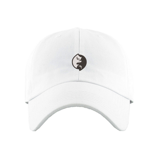 Ying Yang Cat Dad Hat designed by Patches and Pins. Stay warm in the winter and cool this summer with our custom dad hats.