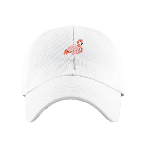 Flamingo Dad Hat designed by Patches and Pins. Stay warm in the winter and cool this summer with our custom dad hats.