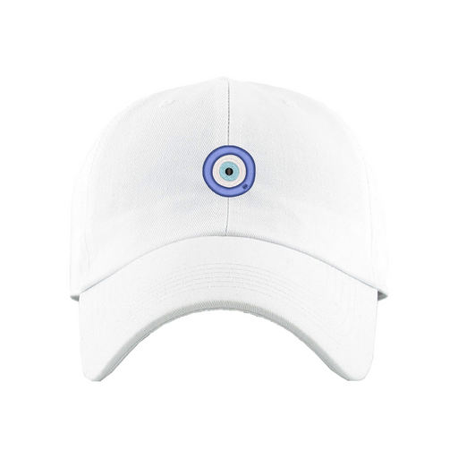 Evil Eye Dad Hat designed by Patches and Pins. Stay warm in the winter and cool this summer with our custom dad hats.