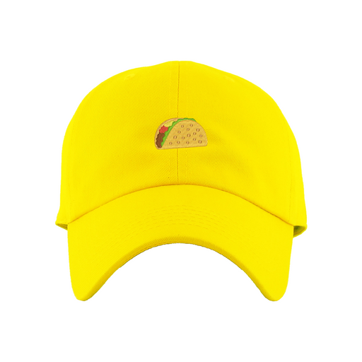 Taco Dad Hat designed by Patches and Pins. Stay warm in the winter and cool this summer with our custom dad hats.
