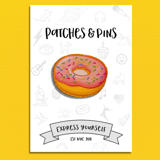 Go on. Treat yourself! Donut enamel pin by Patches and Pins. Dimensions: 0.75" x 1"