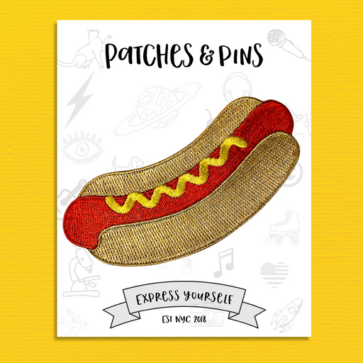 Hot Dog Patch by Patches and Pins. Our embroidered patches elevates & personalizes any jacket, sweatshirt, bag, jeans, & more into fashion...