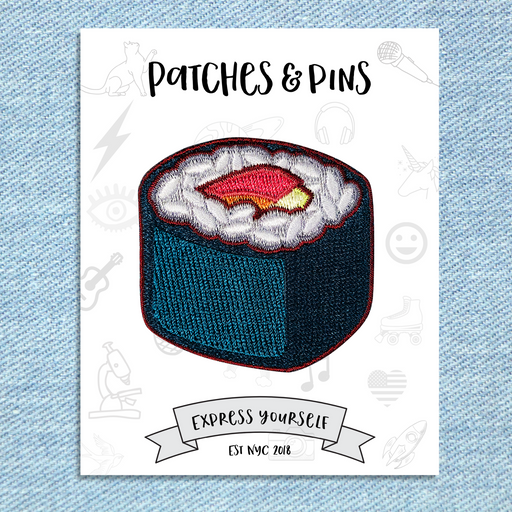 California Roll sushi Patch by Patches and Pins. Our embroidered patches elevates & personalizes any jacket, sweatshirt, bag, jeans, & mor...