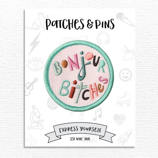 Bonjour bitches by Patches and Pins. Our embroidered patches elevates & personalizes any jacket, sweatshirt, bag, jeans, & more into fashi...